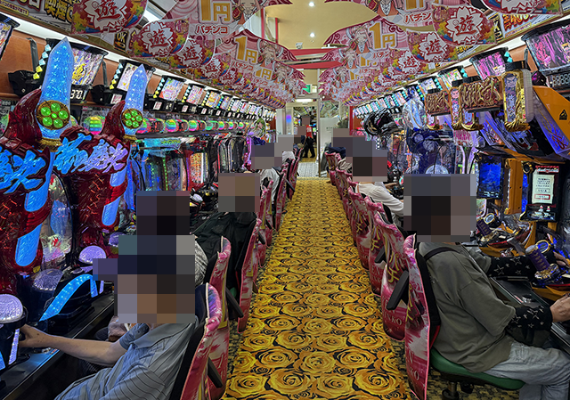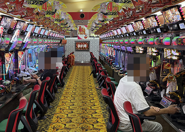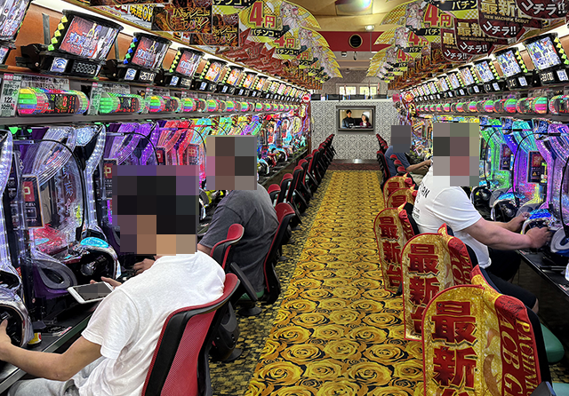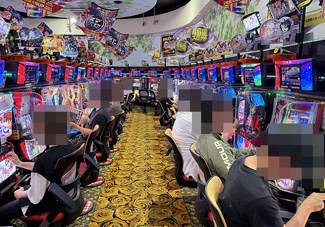 遊パチや海物語シリーズの稼働率が高く、あちこちに遊技を満喫しているといった姿があった。