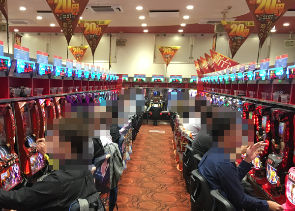 ボーナスタイプからAT・ART機まで、満足そうに遊技をしているプレイヤーが多数。