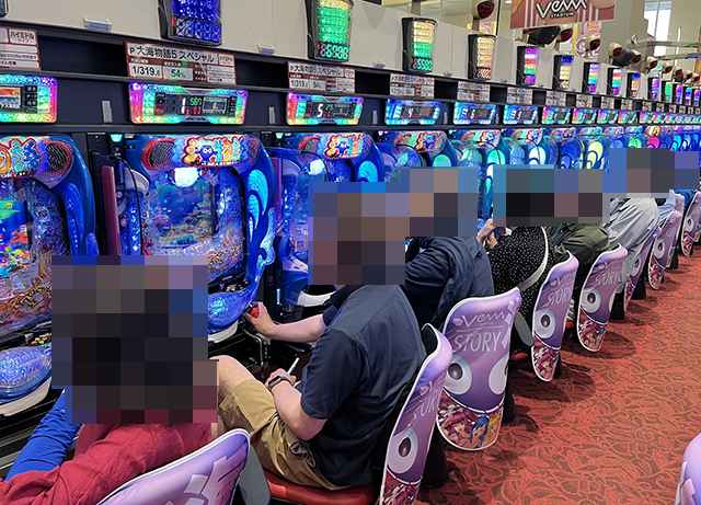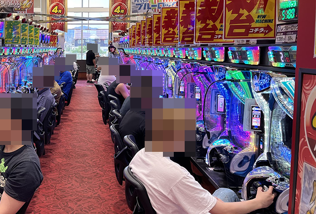 パチンコもにぎわっており、最新機種の「eフィーバーブルーロック」で出玉が40,000pt以上となっている台を確認した。
