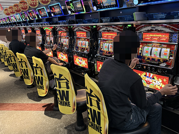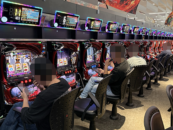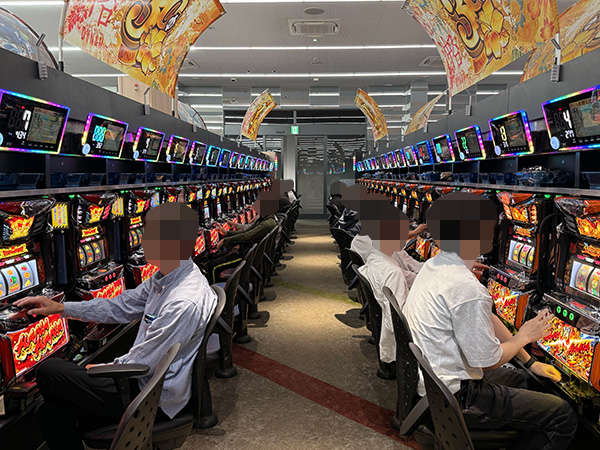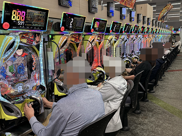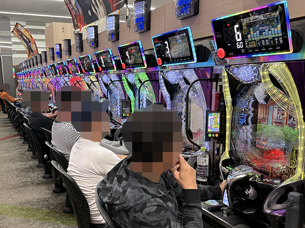 取材時は既に多くのプレイヤーが集結し、パチンコ・パチスロを問わずにぎやかな状況となっていた。
