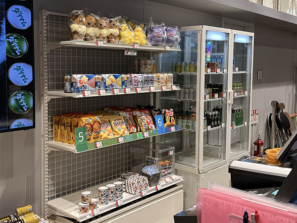 景品コーナーにはお菓子・インスタント食品・酒類など多彩なアイテムが揃っており、プレイヤーたちの目を引いていた。