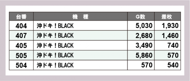 ※差枚数順に掲載しています