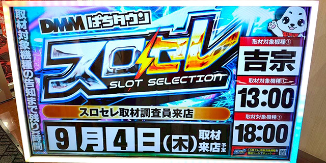 9月4日(木)マルハン昭島店にて、DMMぱちタウンの新感覚取材「スロセレ」を実施。