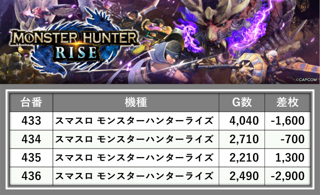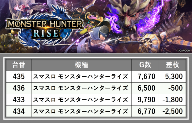 厳選された取材対象機種をはじめ、その他スロット全体から好記録が飛び出した!プレイヤーが楽しんだ1日を下記データにて振り返ってみて欲しい。