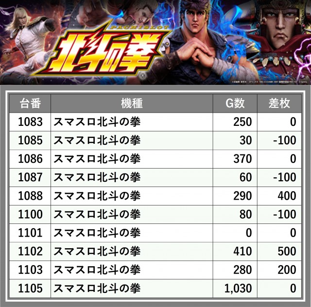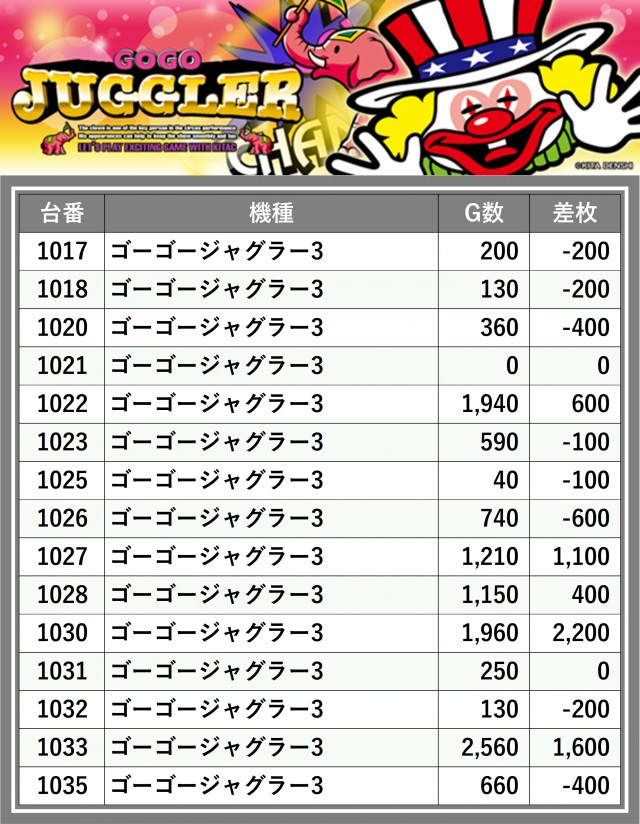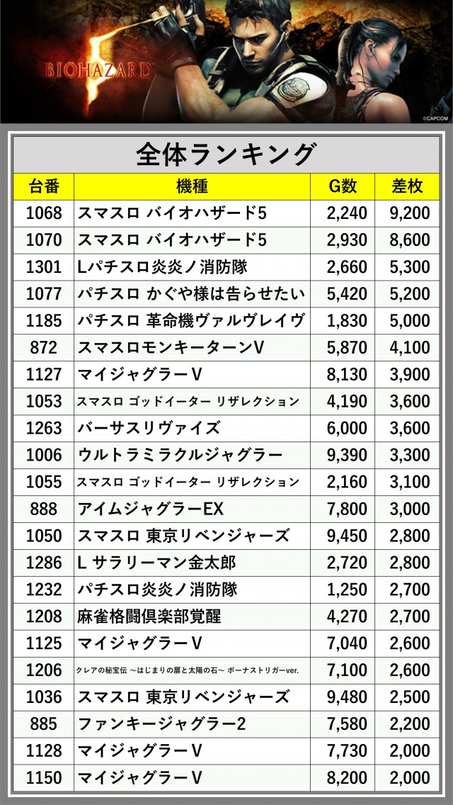 厳選された取材対象機種をはじめ、その他スロット全体から好記録が飛び出した!プレイヤーが楽しんだ1日を下記データにて振り返ってみて欲しい。