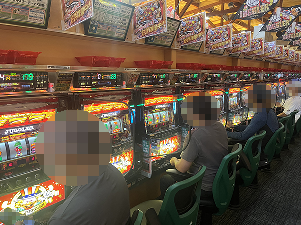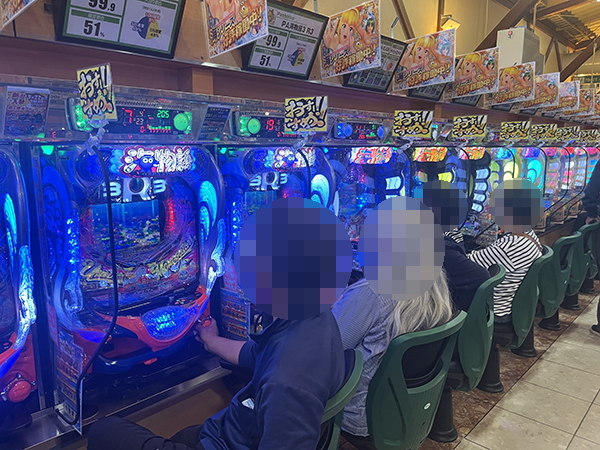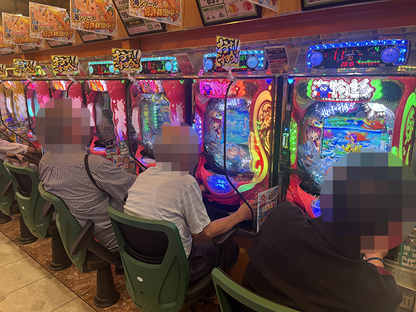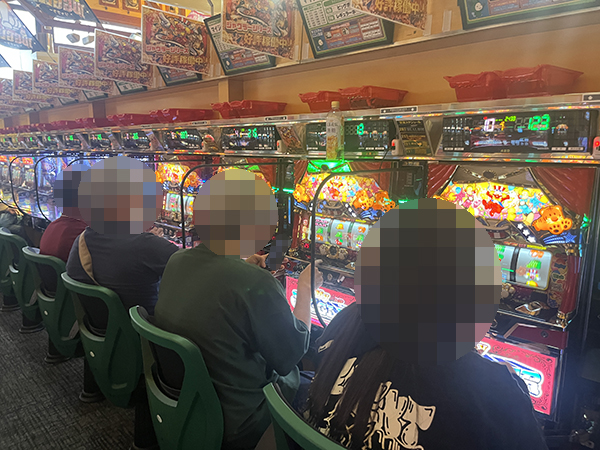 取材時は既に多くのプレイヤーが集結し、パチンコ・パチスロを問わずにぎやかな状況となっていた。