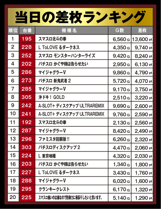 差枚ランキング
