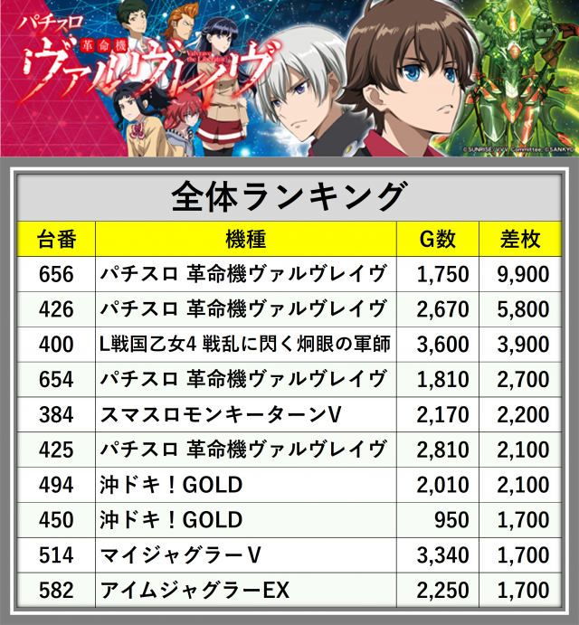 厳選された取材対象機種をはじめ、その他スロット全体から好記録が飛び出した!プレイヤーが楽しんだ1日を下記データにて振り返ってみて欲しい。