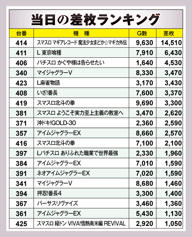※差枚数順に掲載しています。