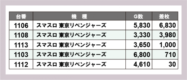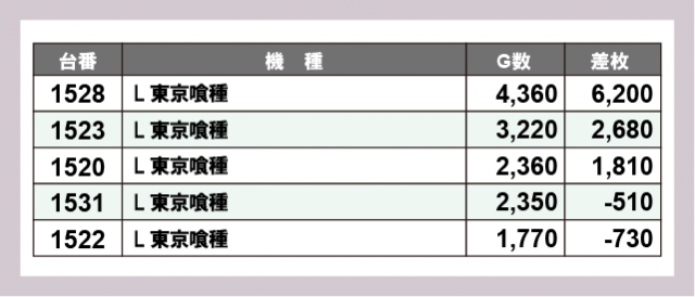 ※差枚数順に掲載しています