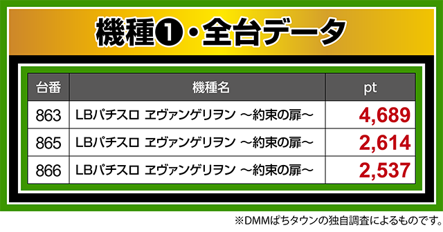 『LBパチスロ ヱヴァンゲリヲン ~約束の扉~』の863番台が+4,600ptオーバー!!