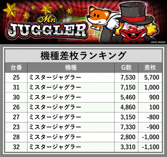 厳選された取材対象機種をはじめ、その他スロット全体から好記録が飛び出した!プレイヤーが楽しんだ1日を下記データにて振り返ってみて欲しい。