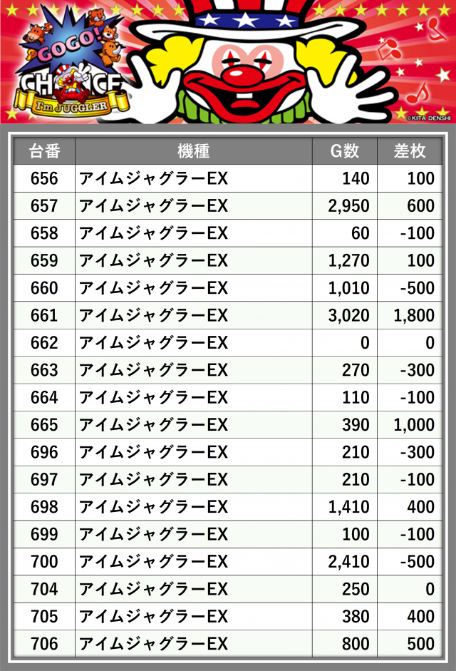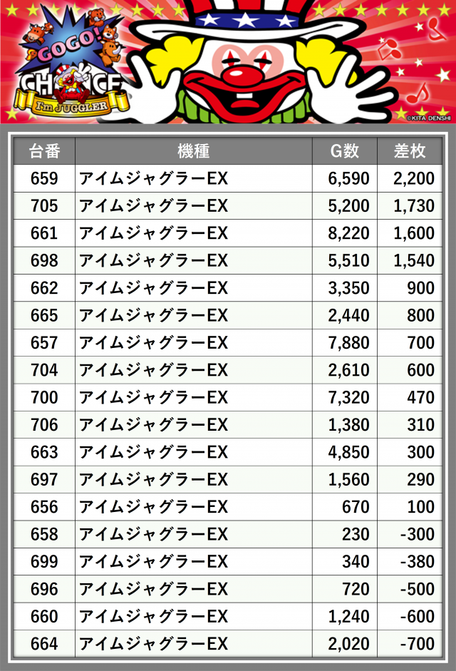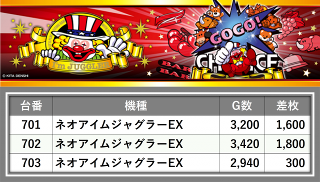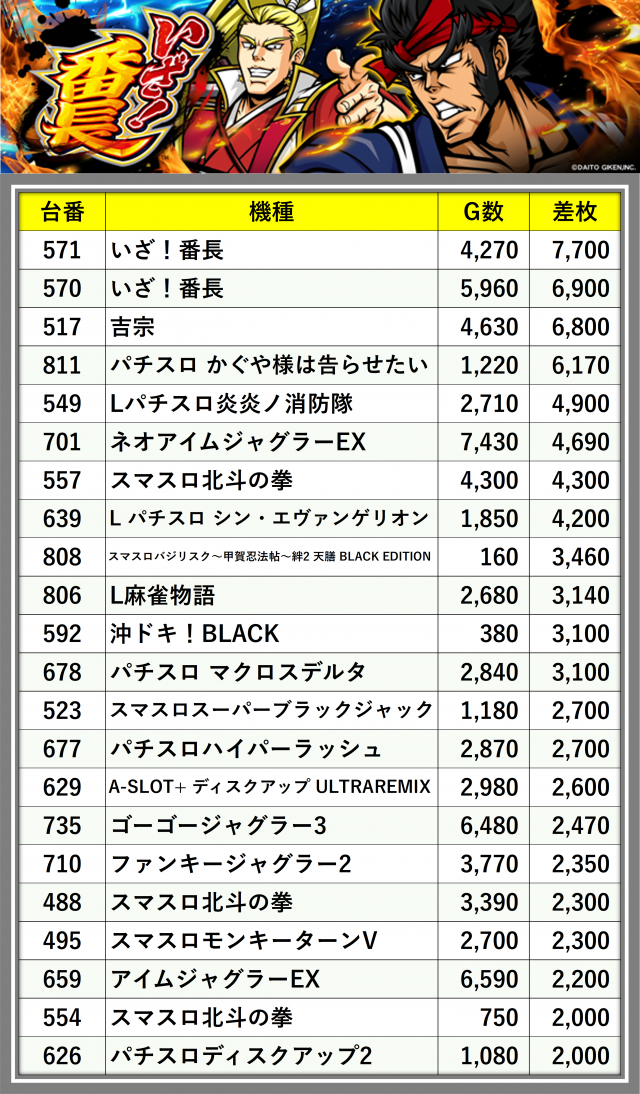 厳選された取材対象機種をはじめ、その他スロット全体から好記録が飛び出した!プレイヤーが楽しんだ1日を下記データにて振り返ってみて欲しい。