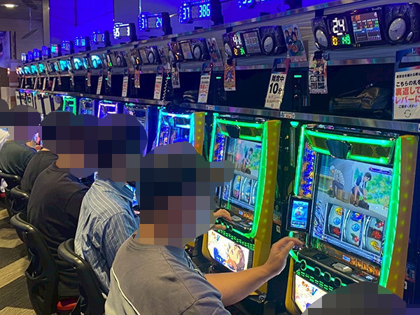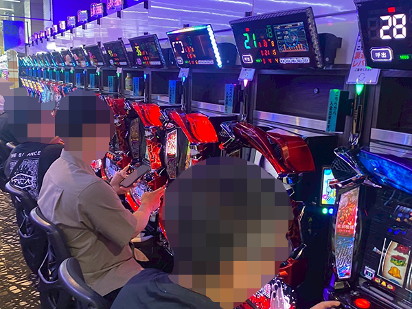 取材時は既に多くのプレイヤーが集結し、パチンコ・パチスロを問わずにぎやかな状況となっていた。