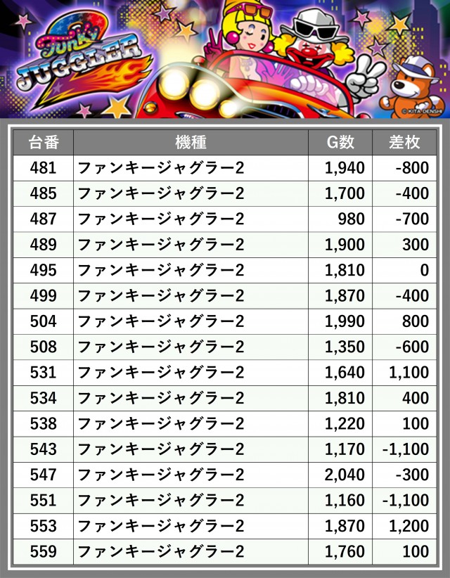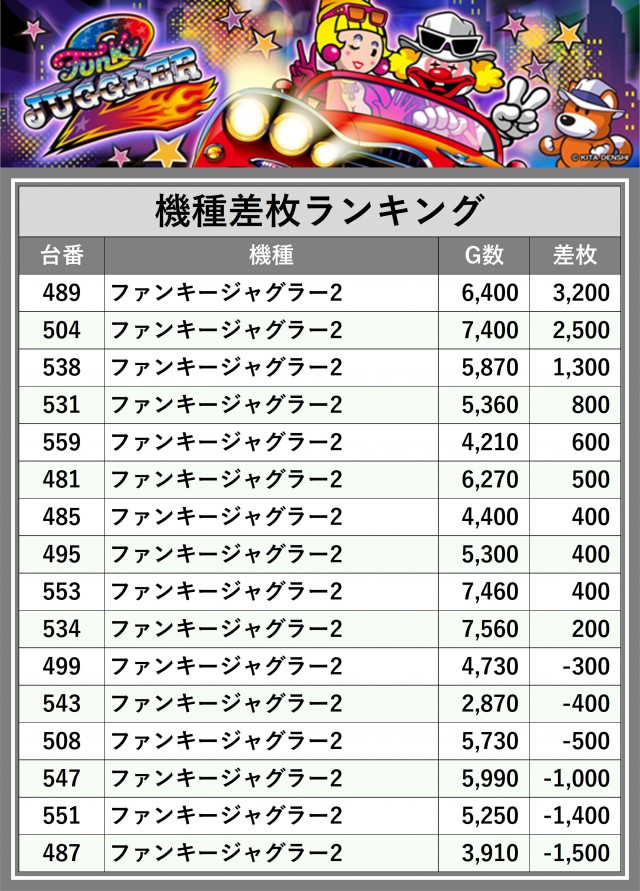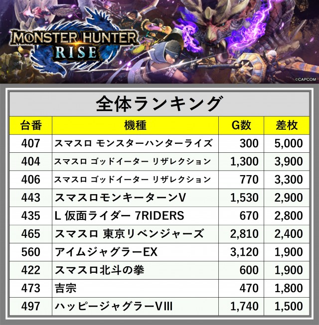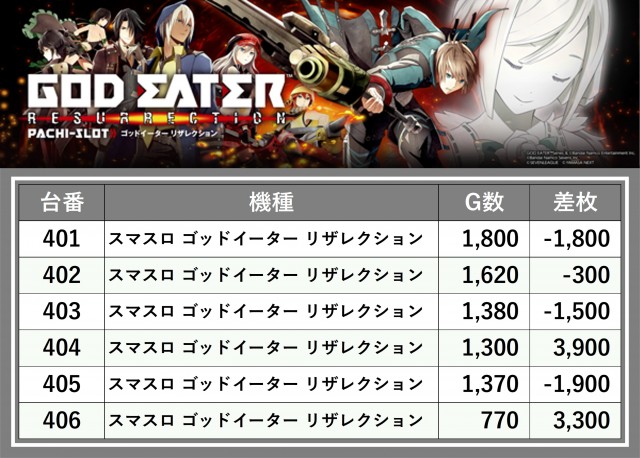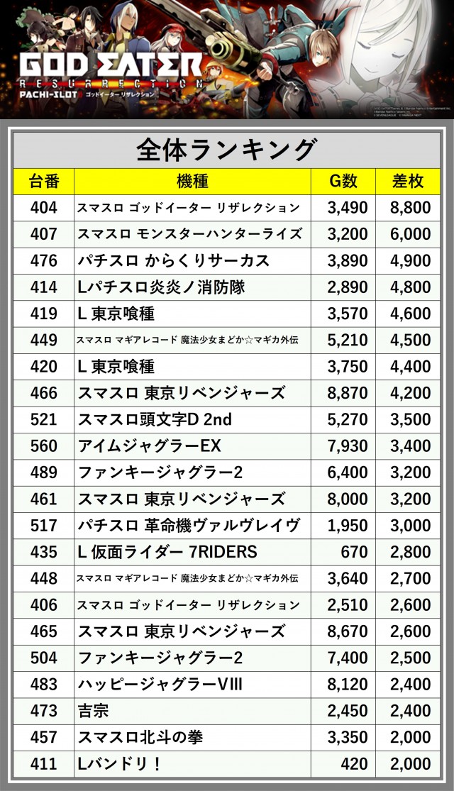厳選された取材対象機種をはじめ、その他スロット全体から好記録が飛び出した!プレイヤーが楽しんだ1日を下記データにて振り返ってみて欲しい。