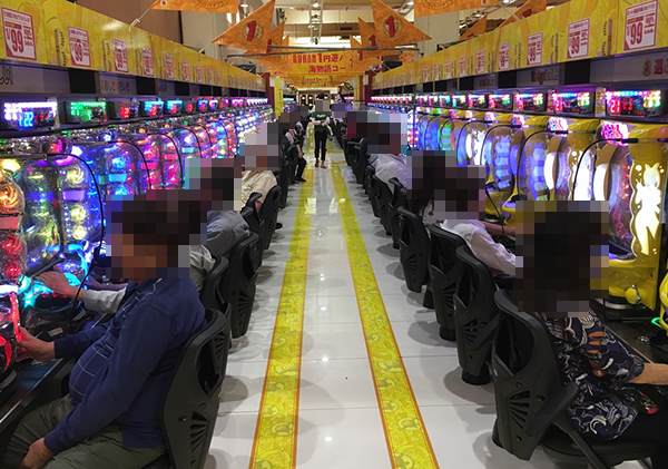 厚く支持されていた1円パチンコもにぎやかな状況。