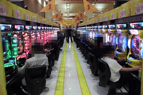 厚く支持されていた1円パチンコもにぎやかな状況。