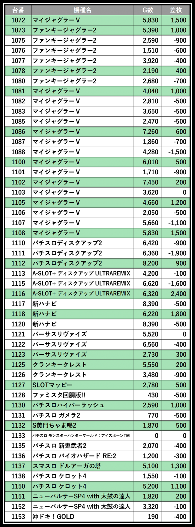その結果の中から、ぱちタウンが注目すべきポイントを厳選してユーザーにお届け!プレイヤーが楽しんだ一日を下記データにて振り返ってみて欲しい。