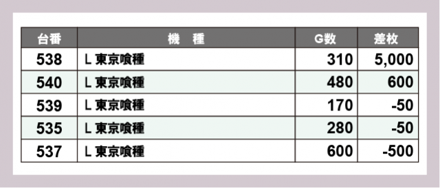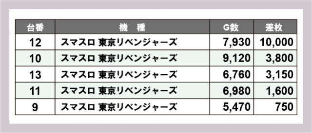 ※差枚数順に掲載しています
