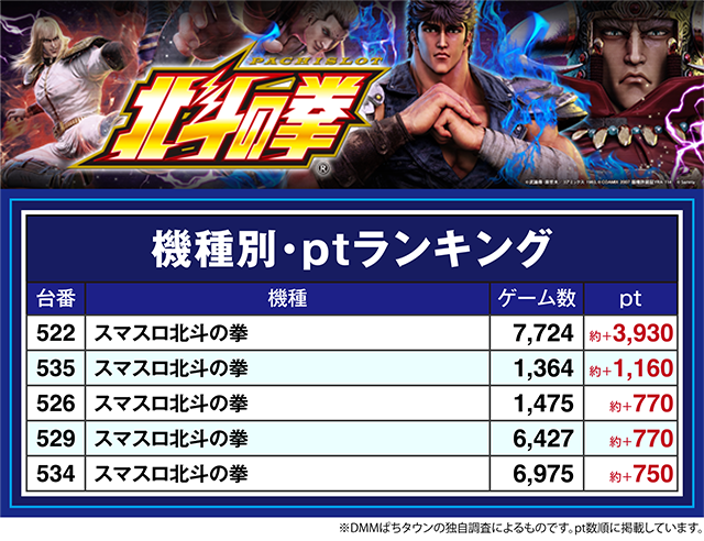 「スマスロ北斗の拳」でも、約+4,000ptクラスの台を確認。