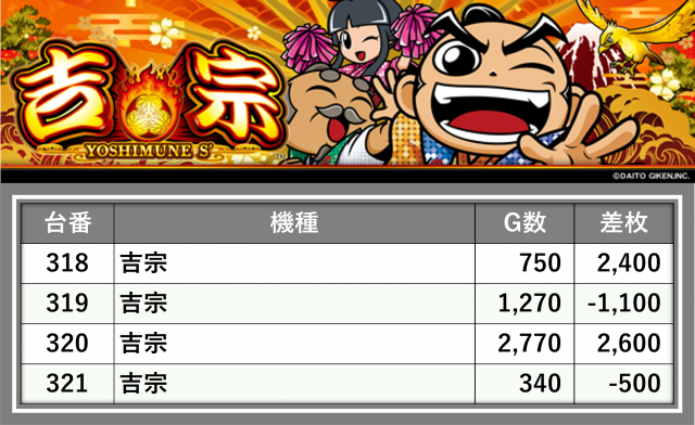 厳選された取材対象機種をはじめ、その他スロット全体から好記録が飛び出した!プレイヤーが楽しんだ1日を下記データにて振り返ってみて欲しい。