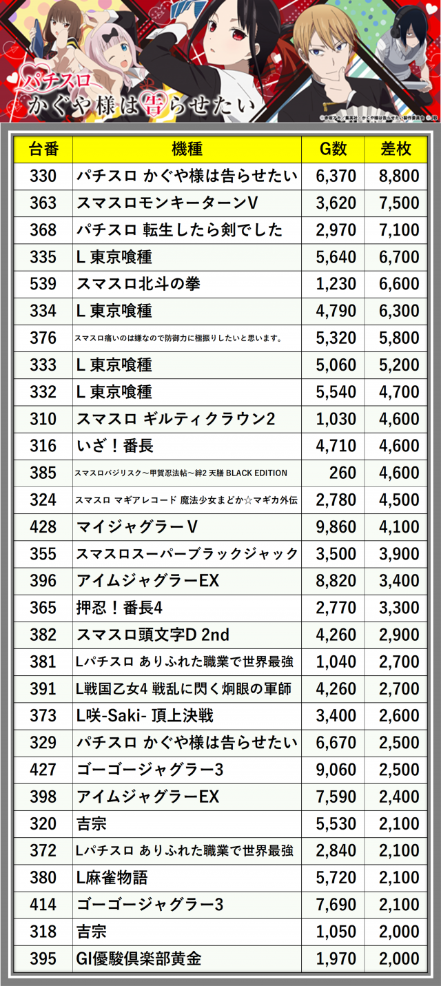 ※記事内の差枚表記はぱちタウン独自調査に基づくものです。ご了承ください。