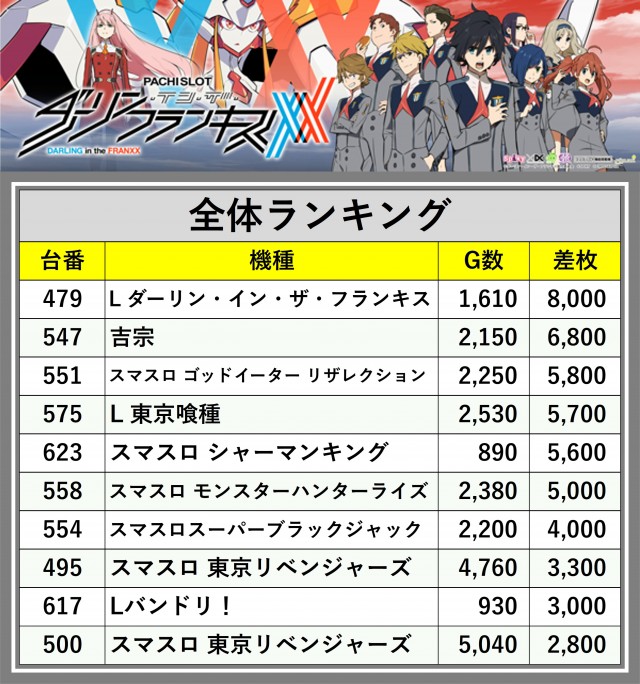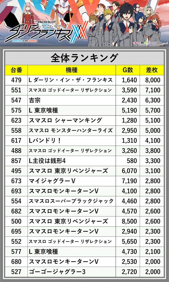 厳選された取材対象機種をはじめ、その他スロット全体から好記録が飛び出した!プレイヤーが楽しんだ1日を下記データにて振り返ってみて欲しい。