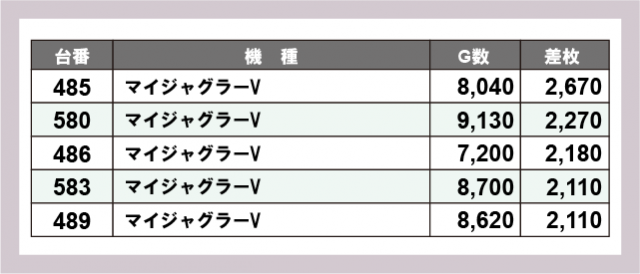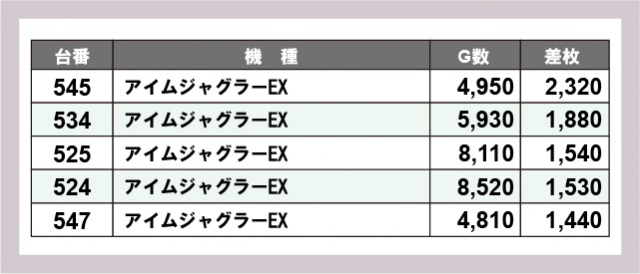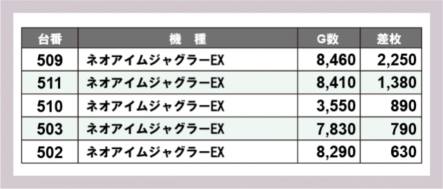 ※差枚数順に掲載しています