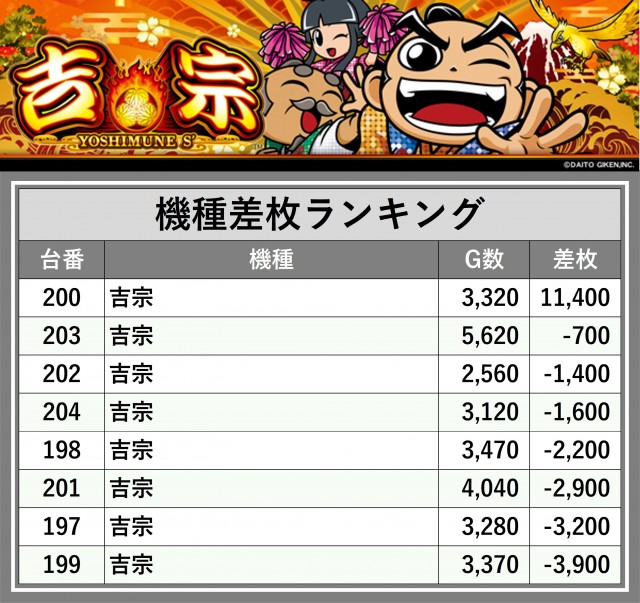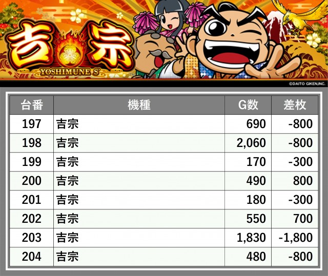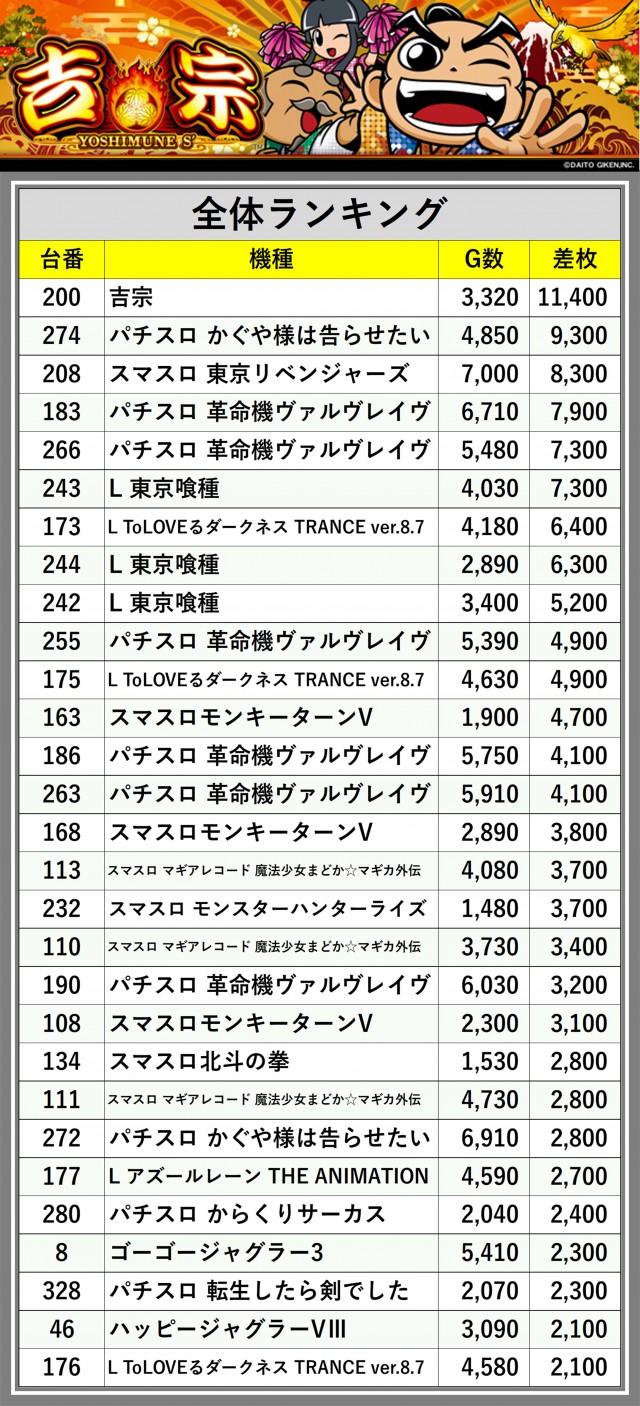 厳選された取材対象機種をはじめ、その他スロット全体から好記録が飛び出した!プレイヤーが楽しんだ1日を下記データにて振り返ってみて欲しい。