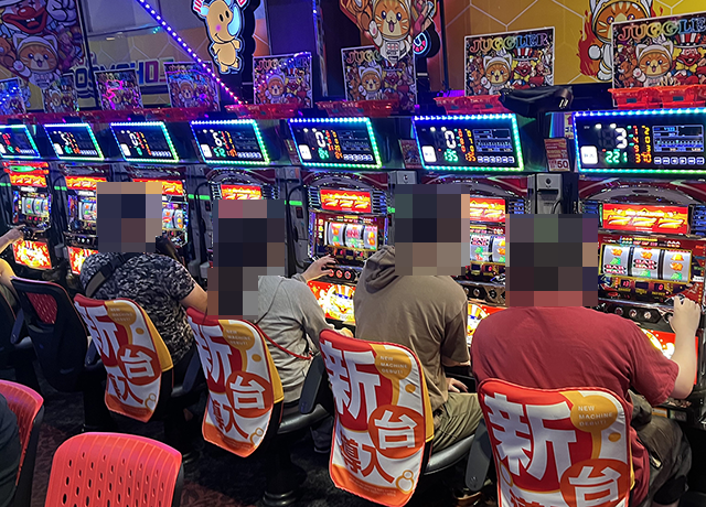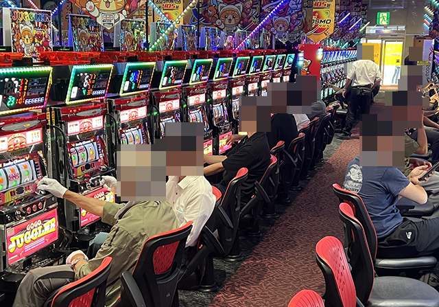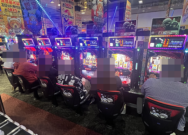時間帯を問わずに、つねに明るい雰囲気となっていた「SLOT COSMO 405」。