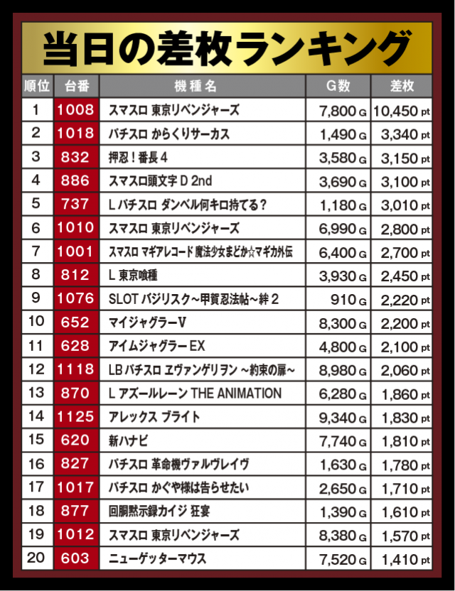 この日のSAPグループはひと味違う。DMMぱちタウンは、「SAP相模原」の特別なひとときを一斉取材した。特に華々しい活躍を残した機種たちをピックアップして紹介しよう。まずは差枚ランキングの発表だ!