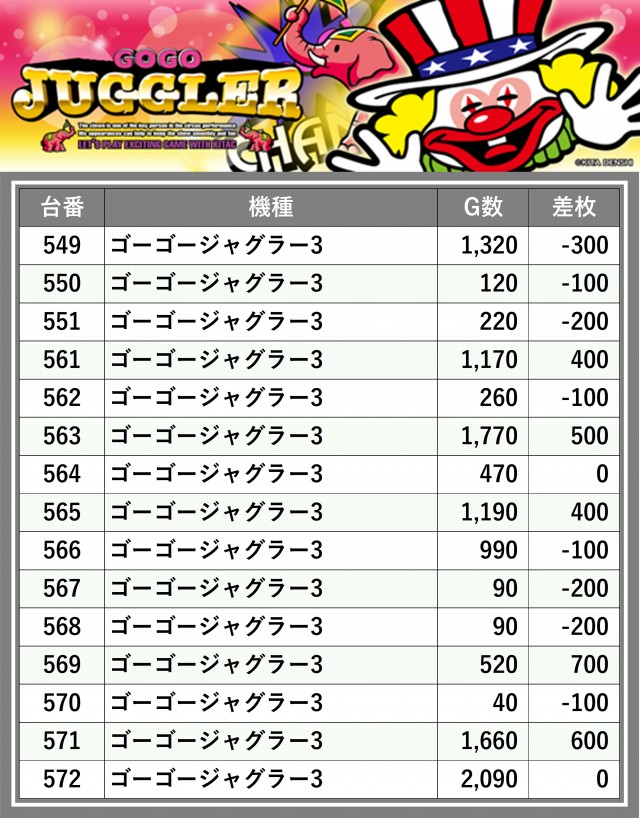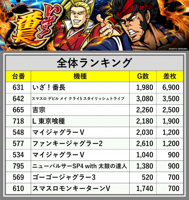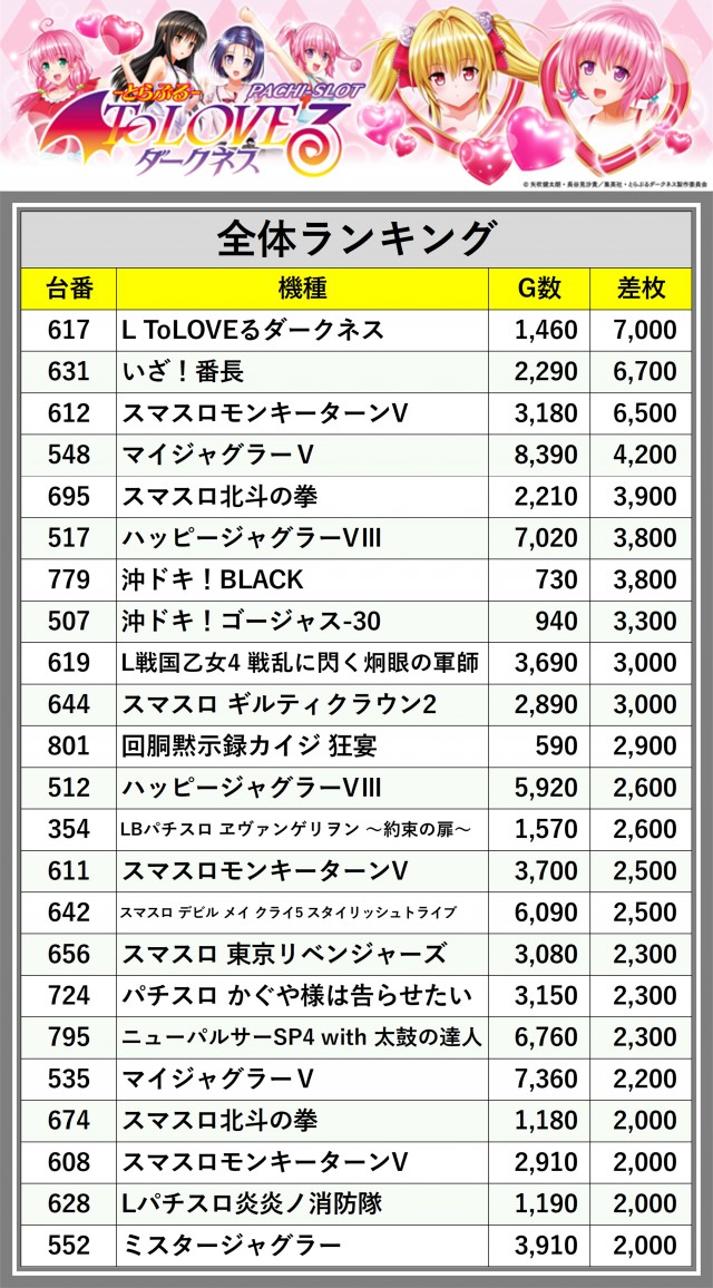 ※差枚数順に掲載しています