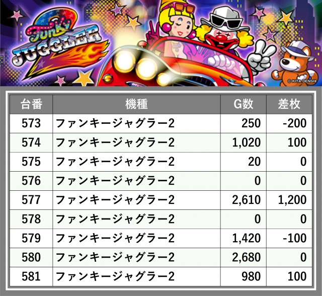 ※台番順に掲載しています