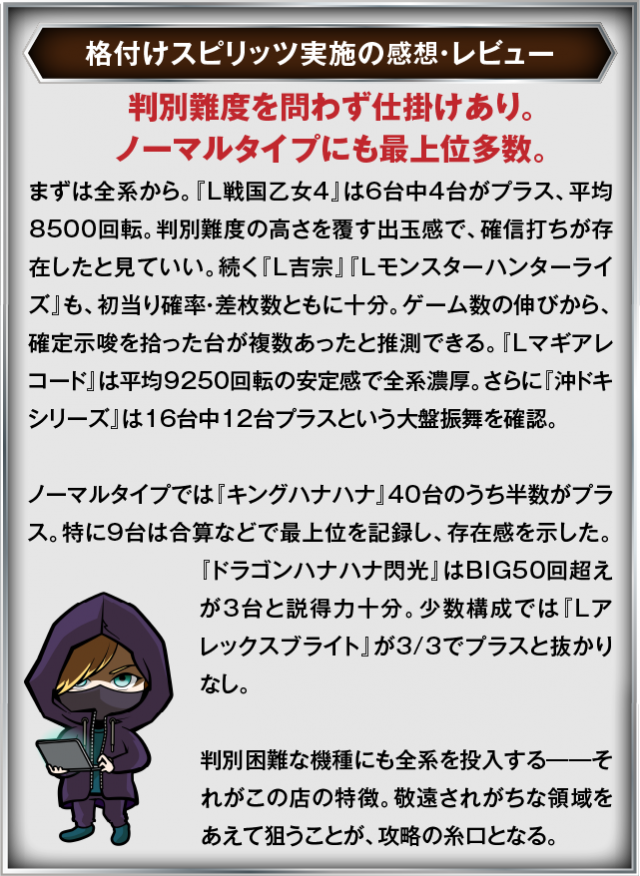 9月14日(日) メガコンコルド1212+6みなと木場インター店にて、DMMぱちタウンの「格付けスピリッツ」を実施。