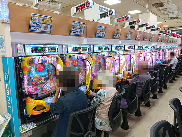 15時ごろの1円パチンコでは、海物語シリーズなどでプレイヤーが華麗なパフォーマンスを披露。微笑ましいシーンを随所で目にしている。