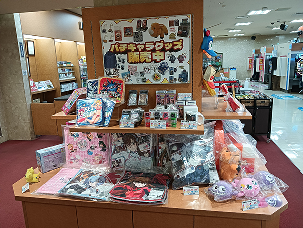 景品コーナーにはたくさんのパチキャラグッズが並んでおり、プレイヤーたちの興味を引いていた。