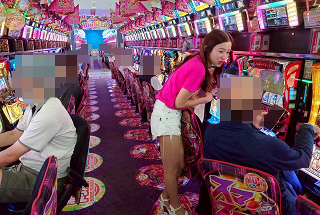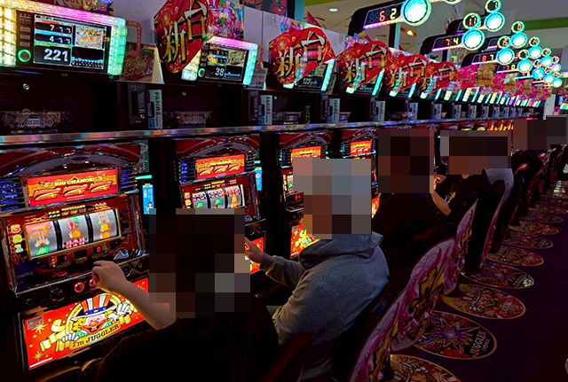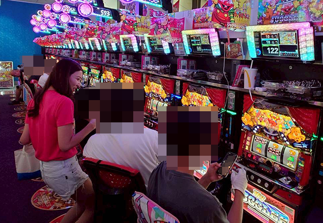 パチスロをチェックすると、新台の「ネオアイムジャグラーEX」が満席!