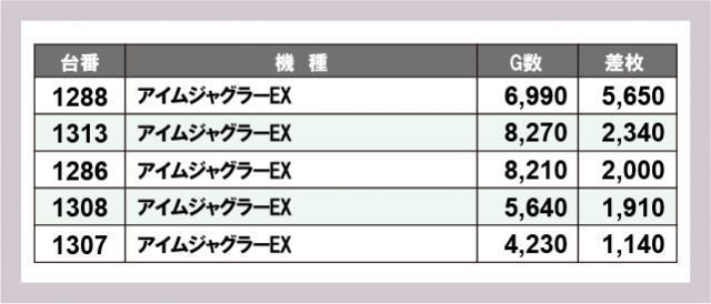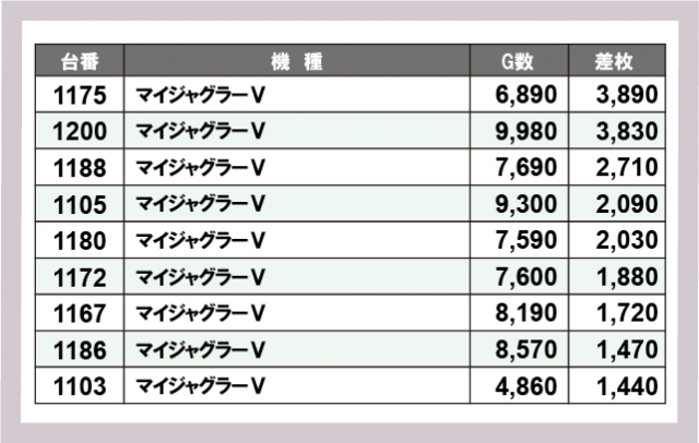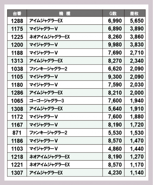 ジャグラー差枚ランキング