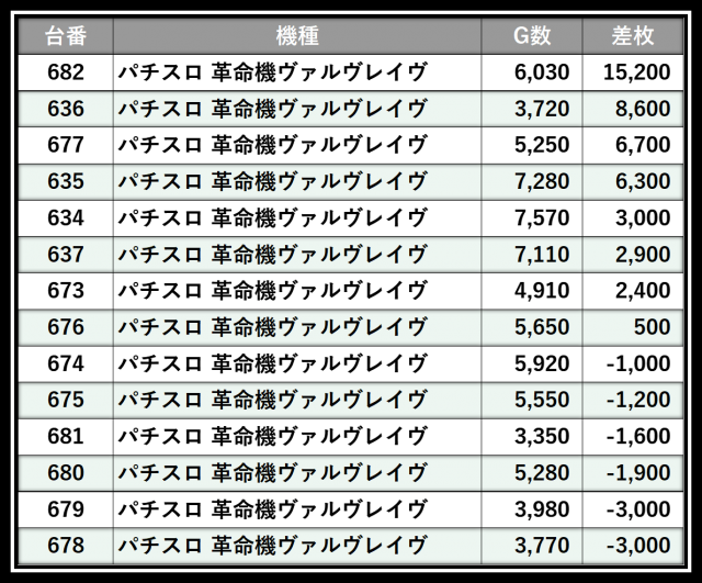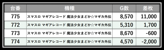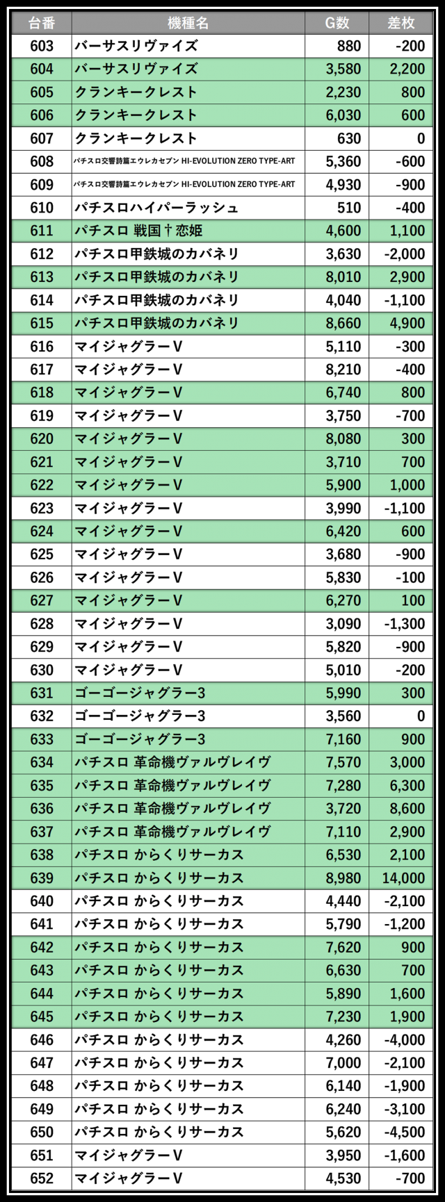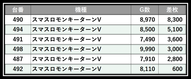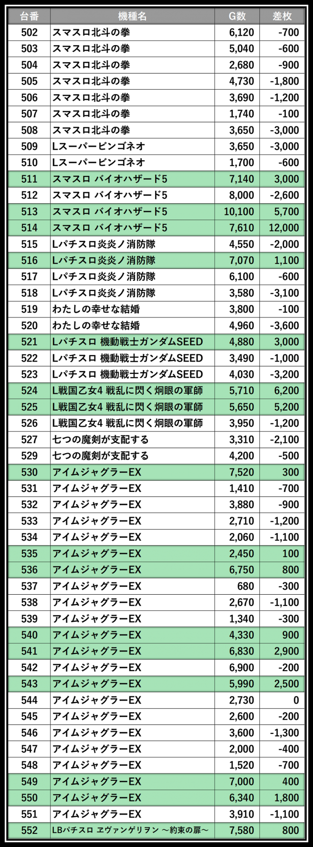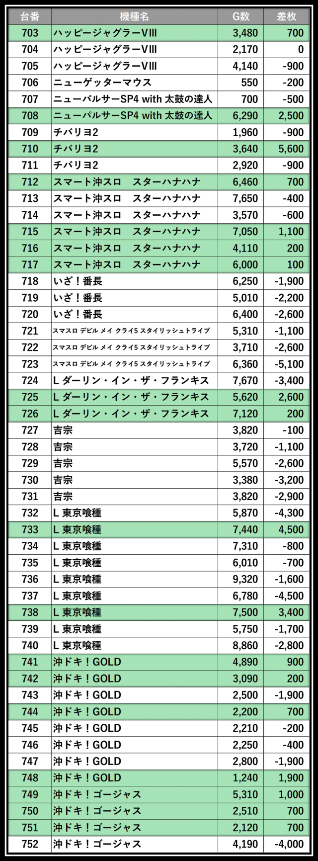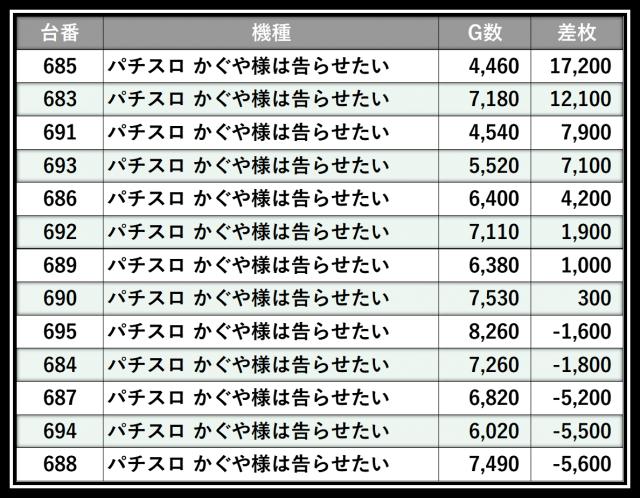 ※差枚数順に掲載しています