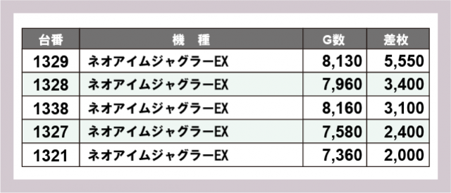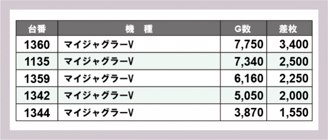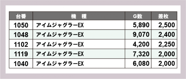 ※差枚数順に掲載しています