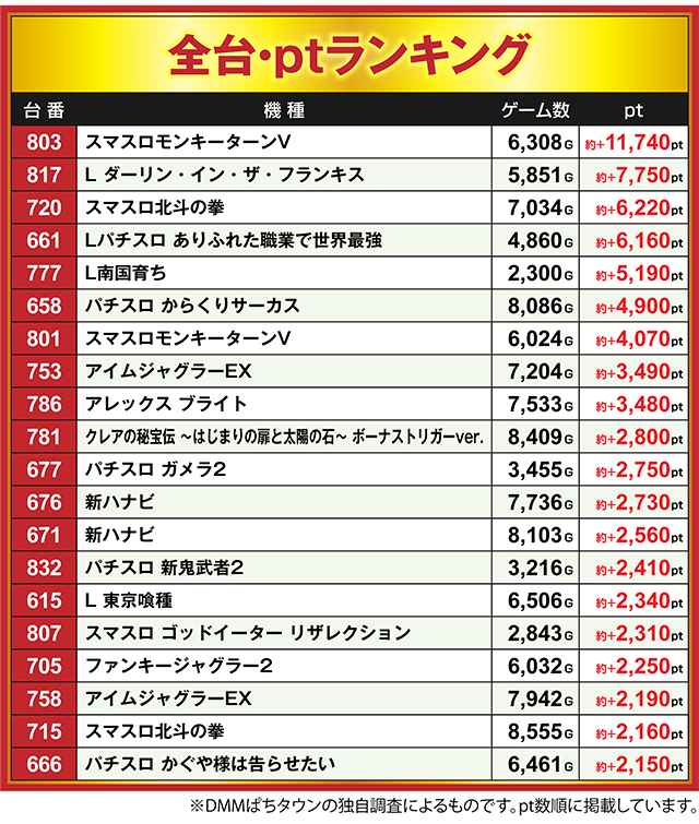 ※なお、本記事中のデータは全てDMMぱちタウンの独自調査によるものです