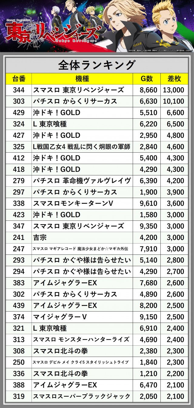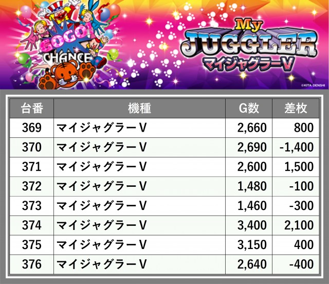 厳選された取材対象機種をはじめ、その他スロット全体から好記録が飛び出した!プレイヤーが楽しんだ1日を下記データにて振り返ってみて欲しい。