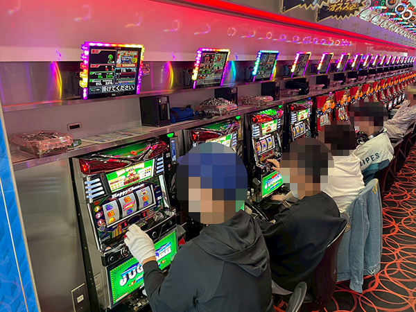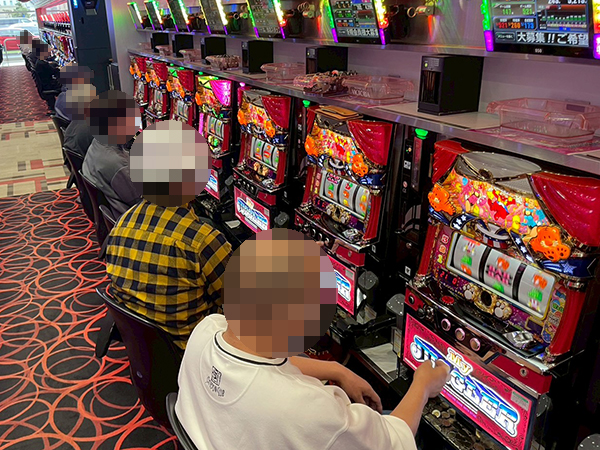 1000円/46枚パチスロを見渡すと、「ハッピージャグラーVⅢ」や「マイジャグラーⅤ」で理想的な展開を迎えたプレイヤーが見られ、シマ全体に華やかな光景が広がっていた。