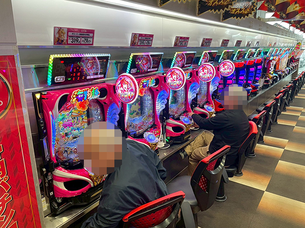 13時ごろの1000円/232玉パチンコをチェックすると「e牙狼12黄金騎士極限」や「Pスーパー海物語IN沖縄6」が盛況の様子。プレイヤーたちの満足気な表情が印象に残っている。