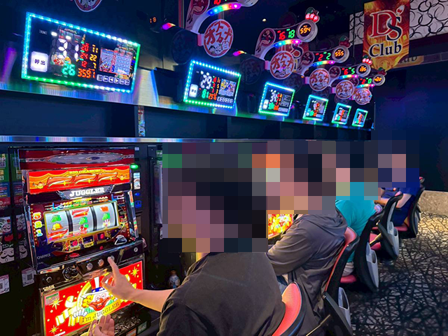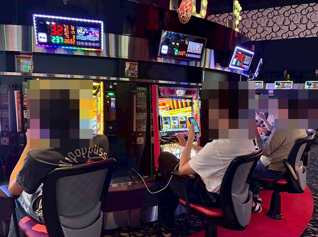 パチスロコーナーをまわり、プレイヤーたちの活躍をみにいこう。