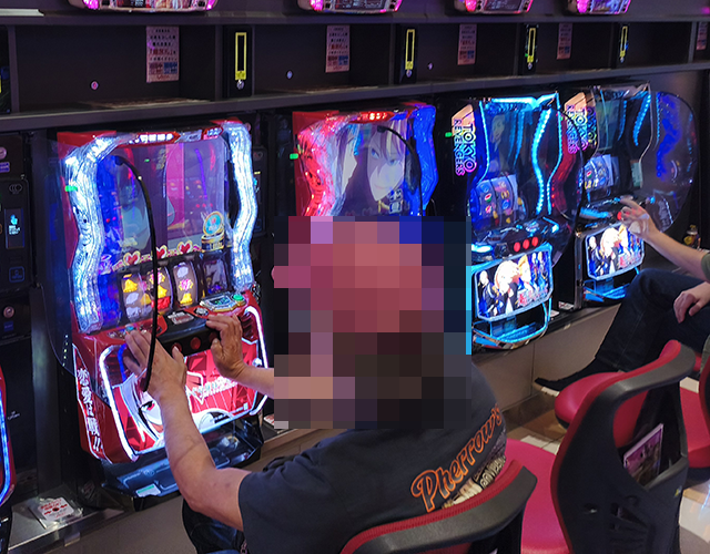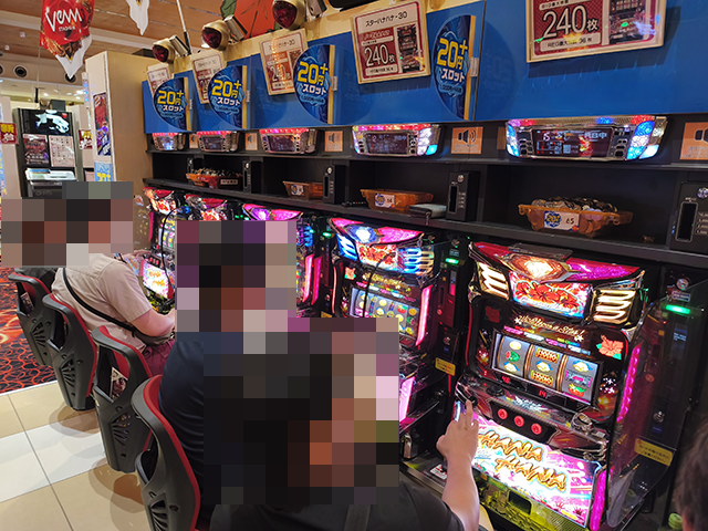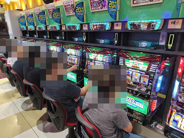 プレイヤーたちの活躍をカメラにおさめるべく、まずはパチスロコーナーからみていこう。