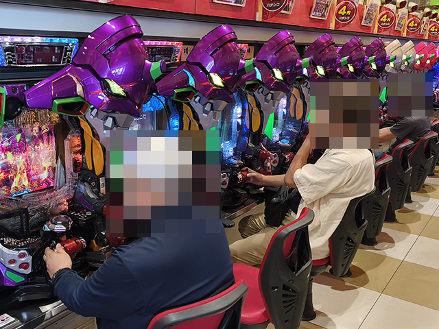 「新世紀エヴァンゲリオン~未来への咆哮~」や「e真・一騎当千~軍神覚醒~319大入りver.」、海物語シリーズなどで楽しげなプレイヤーを発見。