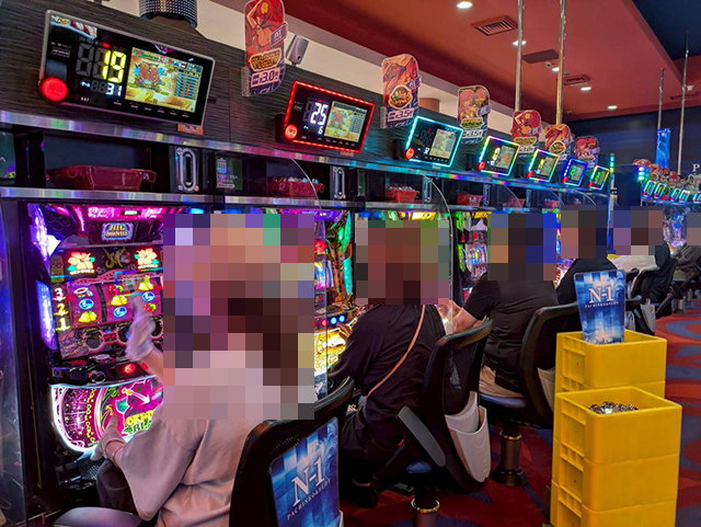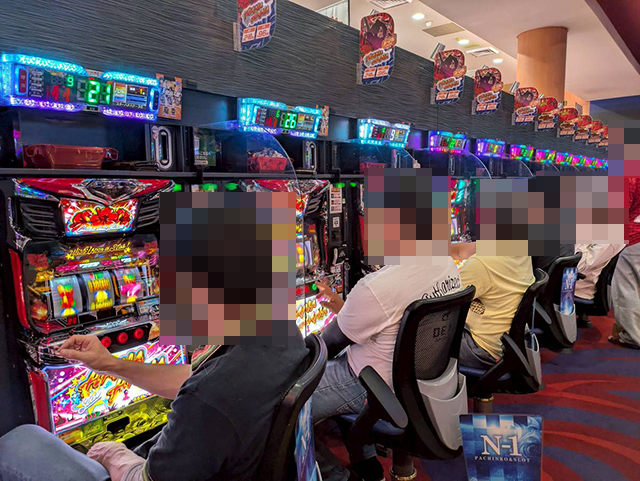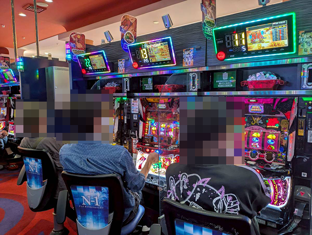 どの機種にも、持ち玉を使って遊技をおこなっている姿があった。