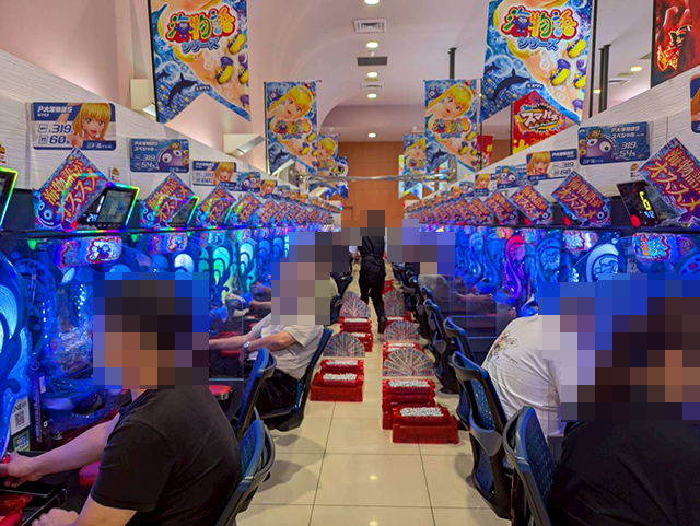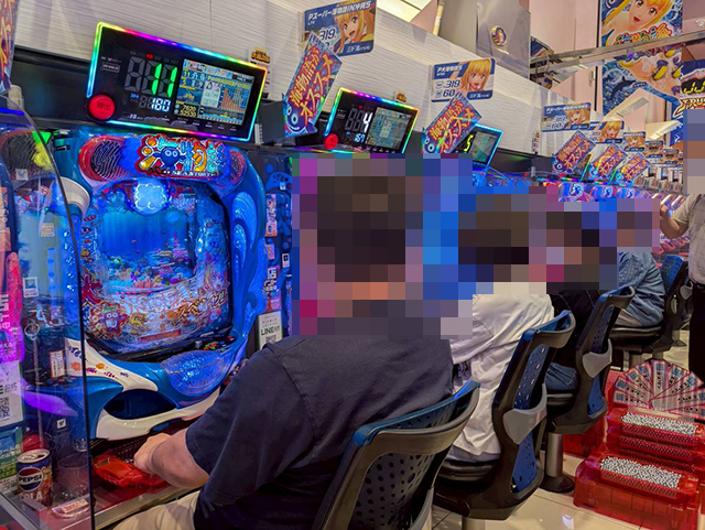 「P大海物語5」にも持ち玉を使い、笑顔で遊技をおこなっている姿があった。