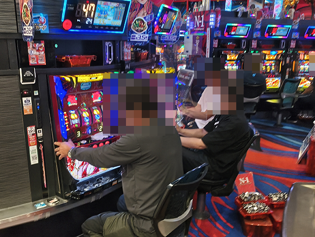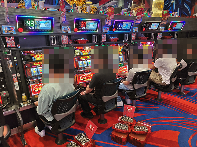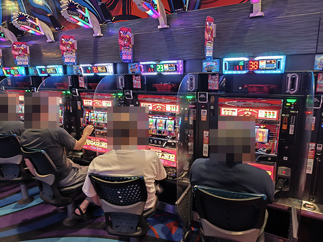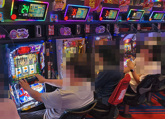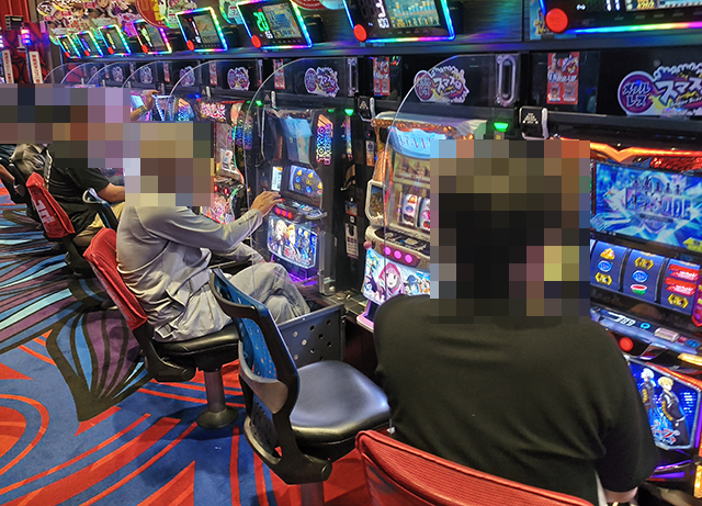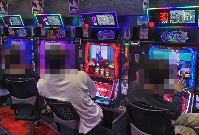 パチスロコーナーをみると、スマスロや沖スロなど、随所にプレイヤーの笑顔が広がっていた。